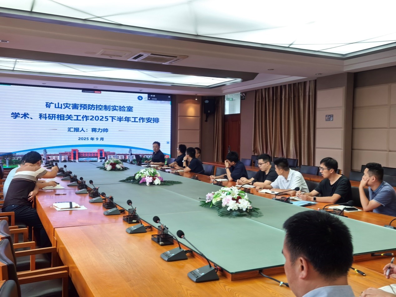 2025年9月03日,矿山灾害预防控制实验室召开新学期工作部署会。会议锚定全国重点实验室建设目标任务,进一步贯彻落实学校第四次党代会精神决策部署,系统梳理和总结了上半年工作情况,对新学期的总体目标、重点任务和工作要求进行了全面部署。全体实验室教师参加会议。